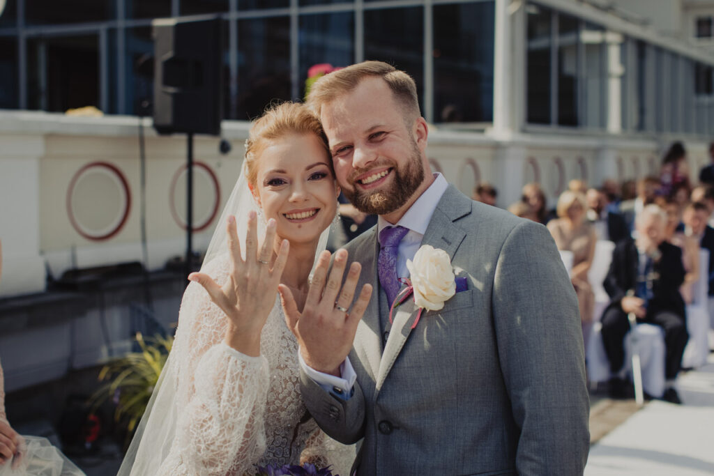 Pamiętam dokładnie dzień, w którym zadzwonił do mnie Tomasz. Dwa lata wcześniej organizowałam bowiem ślub jego siostrze, Tomasz nie wyobrażał sobie, że mógłby swój Wielki Dzień oddać w czyjeś inne ręce. Takie słowa, to marzenie każdego wedding plannera. Panna Młoda Julia miała klarowną wizję ślubnego dnia, miało być elegancko, ale przytulnie, bo wszyscy po trudnych czasach pandemii potrzebowali relaksu i chwili oderwania się od rzeczywistości. W Dzień Ślubu zbudziło nas piękne słońce, to był dobry znak. Sala balowa hotelu Sheraton zamieniła się w prawdziwy kwiatowy ogród dzięki Natalce Daszewskiej i jej ekipie. Słodki zapach unosił się, zapowiadając cudowną zabawę. Sama ceremonia odbyła się na tarasie hotelu, a specjalnie dla nas przerwano na czas ceremonii cywilnej koncert, trwający obok w muszli koncertowej. Wszystko znaki na niebie i Ziemi sprzyjały pomyślności Pary Młodej i ich dnia. Nie zabrakło przemówień, polskich tradycji, aby międzynarodowym Gościom przybliżyć polską kulturę. Wspomnienia zostały z nami na długo!